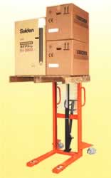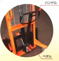 | ■特長 狭い倉庫、狭い通路、どうしてもエンジンリフトや電動リフトが入らない。そんな場所で威力を発揮します。 1tまでの重量物を1.5mの高さまで持ち上げることができます。 ■ハンドル