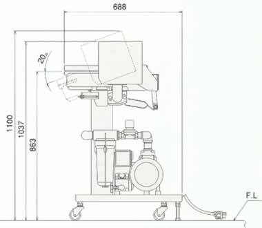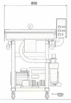フレームはステンレス製、真空ボックスは特殊アルミ鋳物製です。 コントロールボックスを独立させ上部に取り付けました。 真空ボックス上蓋に透明アクリル板を採用していますので、包装物お真空状態が目視で確認できます。 真空ポンプを本機に組み込みまし。 また、キャスター付なので移動もできます。 シールはインパルス方式を採用しています。 |