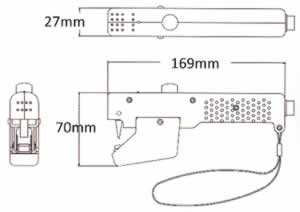 | ■食品販売・工業現場・縫製工場・園芸農家等いろいろなシーンで活躍します。 ●金属針(ホッチキスの針)を使わないのでケガをする心配が無くなりました。 ●金属針・テープ・輪ゴムを使わないのでゴミが出ません。 ●異物混入の恐れが無く、誤食もありません。 ●PSP/PP/PVC/OPS/HIPS/A-PETの熱溶融性製品の溶着が可能です。 ●1秒間8万回の超音波振動による摩擦熱で素材を指1本で瞬時に溶着させます。 ●ヒーター等の熱源を使わないので安心安全 ●素材や用途に合わせ溶着時間をタイマーで調整可能! ![]() ■バッテリー付きの電源部はバンドで腰回りに固定出来る様に製作して有りますので場所を選ばず何処でも作業が可能です。 ![]() ■特長 ●当社独自の設計技術により軽く、長時間の作業でも疲れにくくなってます。 ●ハンドル部分は表面に一切金属製品を使用していませんので全く安全です。 ●フードパックのシーリング以外にも他熱溶融性の材料を使用した品物でしたらどんな製品に限らず文字通り万能選手として活躍可能です。 ●1台分の梱包の中にバッテリー充電器と充電式のバッテリーが付いています。 ●バッテリーは約30分で充電可能な急速充電器を採用してあります。 ●内蔵のニッカドバッテリーは長持ちしますので安心です。 ●海外での使用が可能。(電源は100V〜240V対応) ■用途 ●食品工場(フードパックのシーリング等) ●工業現場(部品の小分け・プリスターパック止め等) ●縫製加工(仮止め・タグの溶着等) ※綿製品は溶着可能です。 ●園芸関係(野菜のパック詰めのシーリング等) ●家電製品(小物の包装等) ■ハンドル/本体 ![]() ![]() ■寸法図 ![]() ■仕様