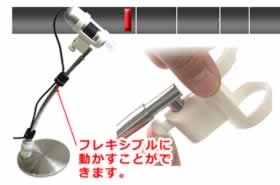 下記専用スタンドなどで本体を固定した状態でのご利用をお勧めしております。 ■オプション ●専用マルチアングルスタンド:M1080LIST06S 基盤の確認など、手に持ってピントを合わせることが大変な対象物も、スタンドにセットすることで、ピント調整も楽々! 側面のダイヤルを回すことで、ピントの微調整も可能です。 ![]() ![]() ●マルチアングルブーム付スタンド:M1080LIST07S 微妙な高さ調整から横、縦移動まで様々なアングルに対応。 ![]() ●ダイヤル調整フレキシブルスタンド:M1080LIST32S ![]() ![]() ●スタンド用フレキシブルアーム:M1080MSAK810S マルチアングルスタンド、マルチアングルブーム付スタンドのポール部に設置して、フレキシブルスタンドにする事が可能。 ![]()