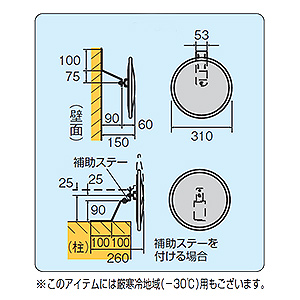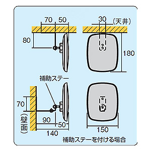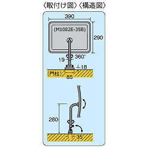 ●天井用専用金具 ミラーをガッチリと門柱に取り付ける時に適しています。 ※M1082K-91SはM1082E-33BSには使用できません。