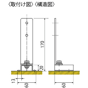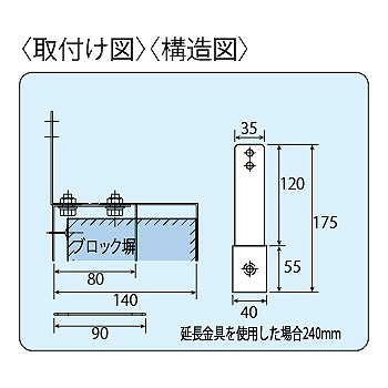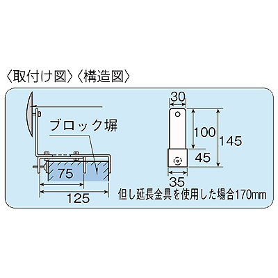 ●はさみ込み金具 ブロックや門扉などに、はさみ込んで取り付けられる金具です。取り付け場所に穴をあけずに固定できます。