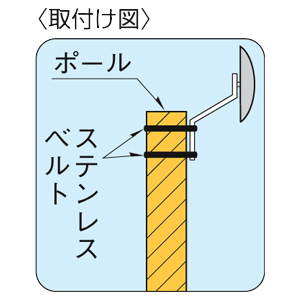 ●ポール取付専用金具 カーブミラーをポールに取り付けることのできる金具です。スパナ―1つでしっかり固定できます。