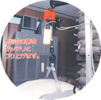 家庭用電源で使える(100V) 小型軽量200kgでわずか、自重7kg タフなパワーチェーンを使用 小型ですので吊代は大きくとれます。 |