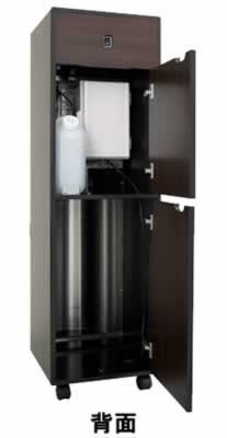 | ■使用場所例 ●公共施設(学校・病院・図書館など) 子供からお年寄りまで多くの方々が集まる場所では予防の徹底が必要とされます。 時間をかけずに、容易に消毒という観点から自動化を図りました。 ●商業施設(ホテル・レストラン・結婚式場など) 多くのお客様のお迎えする施設のロビー・休憩所は広いスペースとなります。 そのため、設置した際に人の目を引きつつ、外観を損なわない高級感あるフォルムをコンセプトに開発いたしました。 ●レジャー施設(美術館・イベント・観光地など) 一日に大勢の方々が集まる施設では他地域からも来場するため、より予防の徹底が必要となります。 一人でも多くの方に使用していただくために一充填で約4000名の手指アルコール消毒を実現しました。 ●企業施設(オフィス・製造及び食品工場など) 毎日の仕事において、感染拡大により運営に支障をきたすとなると企業も痛手を受けることとなります。 予防啓蒙を高めるため、誰もが簡単に使える安心設計、必要な場所に容易に移動できるキャスター式となっています。 ■存在感あるデザイン 横幅41cm 奥行き 57cm 高さ 1m36cmの存在感あるフォルムは、パッと人の目を引きつけます。 高級感ある外観は、公共施設、高級ホテルのエントランス、美術館、工場などに配置しても決して見劣りはいたしません。 ■手をかざすとセンサーが感知し、自動的に噴霧されます。 ![]() ■移動に便利なキャスター付き ![]() ■寸法図 ![]() ■大容量タンクを標準装備、下段には予備タンクスペース有 ![]() ![]() ■仕様