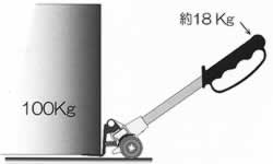 | ■特長 ●特許機構で100kgの重い物でも、たった18kgの力でらくらく持ち上げられます。 ![]() ●滑りにくい指止めと、握りやすい形のグリップ ●軽量なパイプハンドル ●美しいABS樹脂製本体 ●フォーク先端はテーパー状に薄くなっているので家具などの下に大変入れやすく、表面もカチオン塗装仕上げのた めキズがつきにくくなっています。 ●特許(PAT.P)の台車は、4軸6組の車輪(ローラー)を持っており、畳の縁やフローリングの継ぎ目、タイルや石貼りフロ アーの目地などの溝に車輪(ローラー)が落ちることがなく、安全に、スムーズに移動することができます。 ![]() ●ワイドに張り出た台車は安定性と耐荷重に優れ、100kgの荷物にもピクともしません。 ●リフターは安全上、150kgを超える異常荷重を加えた時には、ハンドルパイプを徐々に曲がって、オーバーロードで有る事を知らせる設計になっています。 ハンドに変形が現れた時は、異常な荷重ですからすぐに使用を中止してください。 ●安全ツマミは移動する家具などの下に台車をセットする時に、誤って指などを挟むことが防止できる安全設計です。 (このツマミを持ってセットします。) ![]() ●台車の高さを28mmまでにおさえたので家具などを必要以上に高く上げることがなく、家具の転倒や付属物の落下などの危険が減少しました。 ![]() ■畳もスムーズ、タイル貼りのフロアーでも楽々移動できます。 ![]() ■家具の持ち上げと台車のセット ![]() ■セット内容 ●リフター:1台(全長365mm) ●台車:4台(120×80×28mm) ●説明書:1部 ●保管用布袋:1個 ■リフター能力:150kg (一度で持ち上げられる重さです) ■台車の耐荷重:100kg (台車一台の受け持ってる荷重です) ■各部の名称と材質 ![]() ※使用前にリフター、台車のローラーやフォークを始め各部にキズ・割れ・変形など異常のない事を確認して下さい。 異常がある場合は絶対に使用しないで下さい。 また、移動したい家具などの上に乗っている落ちやすい物や危険な物を取り除いて下さい。 周りに小さな子供さんや危険のない事確認してから作業に掛かって下さい。 ■使用例 ![]() |