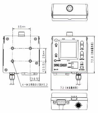 ■角度・角速度が数字で見える ジャイロセンサ内臓のスイングセンサは「角度」、「角速度※」を表示することができます。 ロボットアームや車両など、スイング、右折/左折の動きをする計測対象なら、どの部分に取り付けても検出可能です。 ※「角速度」とは回転する速度です。 例えば「90度」は、「1秒間に90度回転する」ということになります。 |