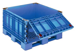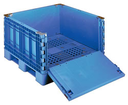 <特長> ●コンテナ嵌合式ですので安全性のよい段積みが可能です。 ●バラ積みや不定形の荷物を安全かつ大量に輸送できます。 ●内容物の出入りがより簡単に出来ます。 |