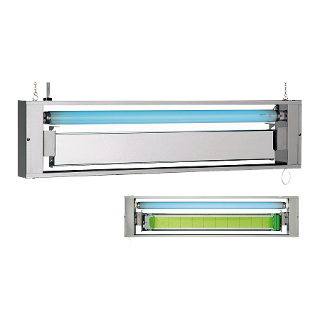| ■特徴 ●抜群の捕虫効果 虫の好む365nm(ナノメーター)の紫外線で虫を誘引し、強力な粘着力を持つ専用捕虫紙で漏らさず捕らえます。 ●オールステンレス製 保護格子・ビス・チェーンに至るまで全てステンレス製(SUS304)錆びることなくいつまでも美しく輝きます。 ●安全・無害 殺虫剤を使用することが難しくなった現在安全に虫を退治するためにも最も効果的な機器です。なお、本体誘虫灯から発生する紫外線は人体に無害なレベルです。 ●清潔・衛生的 いやなニオイや煙を出したり虫の死骸が部屋に散ったりしないから、不快感が全くなく衛生的です。 ●お手入れ簡単 面倒な操作は無用。奥様やお子様にも簡単にセットできる手軽で使いやすい構造。 ![]() ■効果的に使用するポイント ①虫がいそうな場所に設置する 出入り口や窓のそば、また水周りやゴミの近くなど、虫が侵入・発生しやすい場所に設置します。虫が部屋の中を飛び回る前にすばやく捕らえる為です。 ②本器の光が外に漏れないようにする 余計な虫を呼び寄せる可能性があります。 ③なるべく低い位置に設置する 小さな虫の多くは2m以上高くは飛びません。1.5~1.8mの低い位置に設置して頂いた方が虫も良く捕れ、捕虫紙の交換もしやすくなるます。なお、本器は取り付ける高さに法的規制はありません。 ④夜間も稼動させる 一般的に虫は日没後と夜明けに活動が活発になると言われています。夜間に他の照明が落ちて、本器だけ稼動していると一層効果が上がります。 ⑤捕虫紙は定期的の交換する 「虫が減った」「増えた」というのはなかなか目で見た判るものではありません。定期的に交換された捕虫紙の捕獲状態はそのままそのお店(工場)の「虫レベル」を表し、現在の対象が充分であるか判断する貴重な資料となります。本器は専門家のためのツールとしても非常に有効です。 ※人から発生する二酸化炭素とM12S-301Aが発生する炭酸ガスでは、人が発する二酸化炭素の方が強いため、無人の部屋でご使用いただければ蚊も捕虫できますが、人がいる部屋でご使用いただいてもあまり効果はありません。 ●主な利用先 ・食品工場、給食センター、ファーストフード ・スーパー、パン、菓子店、コンビニエンスストア ・製紙工場、印刷工場、塗装工場 ・仕出し店、弁当店、厨房、レストラン ・ラップ、フィルム工場、各種パッケージ工場 ■タイプ ●シンプルなデザインで実現したローコストモデル ●天井からクサリで吊下型