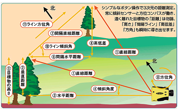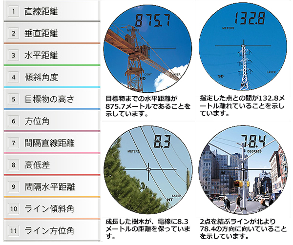 ■機能&使用例 ![]() ![]() ■用途 建設・電設業全般にわたる多様な距離測定、通信設備業、建築設計士、土木設計士、不動産鑑定、森林業、地学、鉄道、ゴルフコース設計、市街地開発プロジェクト等 ■仕様