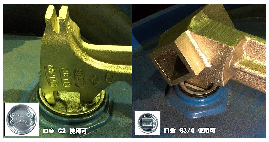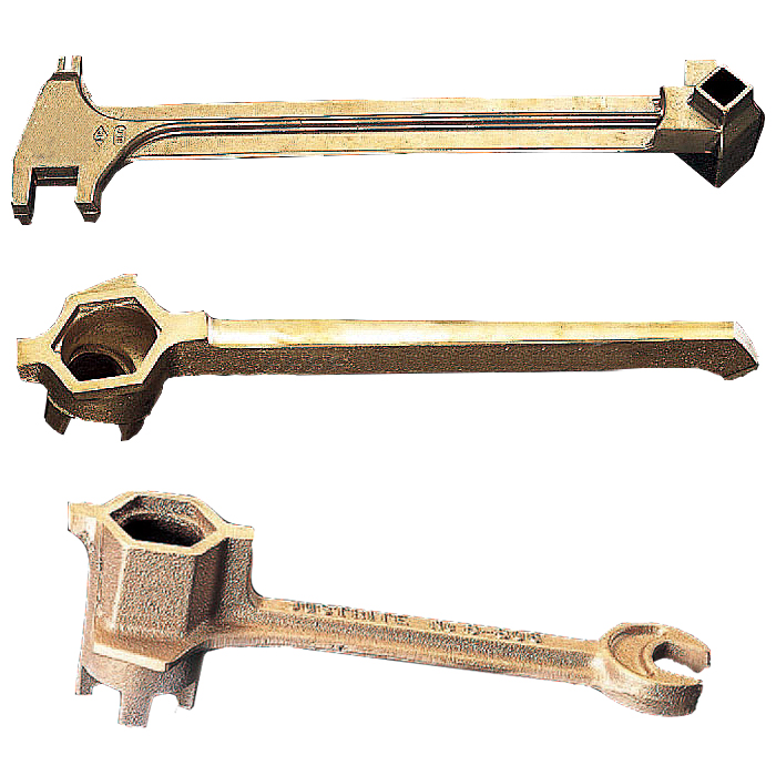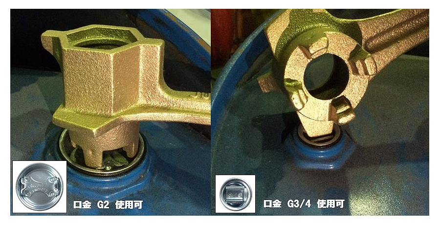 | ■特長 <M14A642KP-1E/2E> ●ドラム缶のキャップ開け用 M14A642KP-1E M14A642KP-2E●防爆・非磁性で耐食性にも優れています ●M14A642KP-1Eは22種のキャップに使用可能 ![]() ●材質はアルミニウム青銅 銅を80~90%にし、アルミニウムの他鉄、ニッケル、マンガンを加えたもので、引張強度、硬度がともにリン青銅より高く機械部品としてよく使用される。 ●米職業安全衛生管理局(OSHA)/全国防火協会(NFPA)も推奨。アメリカの消防・軍隊・ミサイル工場等、様々な現場で使用されています。 <M14A642JM-1E> ●全てのキャップに使用できます。 ●ハンドルは手を保護するデザインになっています。 ●耐食性に優れています。 ●頑丈で火花が出ません。 ●一般的なドラム缶の2”又は3/4”の栓に適合します。 ![]() ●防爆、防錆構造 ■仕様