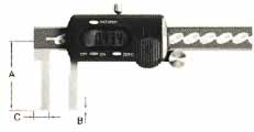 内側溝用ジョー(溝幅1.5mm以上) サムローラ付き 硬化ステンレス鋼 デジタル数字高さ7.5mm データ出力 使用電池 SR44 |