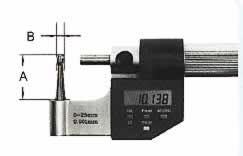 | ■特長 DIN 863 準拠 超硬合金チップ付き測定面 ラチェットシンプル クロムメッキ梨地スリープ 基準棒※/調整キー付き プラスチックケース デジタル数字高さ7.5mm ABS/INC プリセット 公差データ出力 使用電池 SR44 ■寸法図 ![]() ■仕様 ※測定範囲 0-25mmは基準棒なし