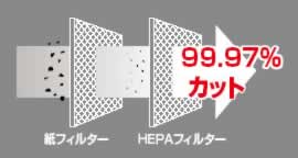 高性能エアフィルターで排気までクリーン。 小回りが利くコンパクトサイズ。 高性能エアフィルターで0.3ミクロン以上のゴミ粒子を99.97%カット。 紙袋タイプ |