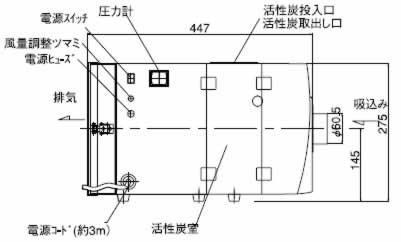 ■機能変更 クリーンクラス1000〜100対応へ変更 ■用途 ●レーザーマーカー作業工程 ●ウエハー・基板、電子部品へのレーザーマーカー印字工程での集塵・消臭 ●はんだヒュームの集塵、消臭 ■寸法図