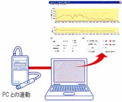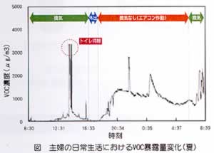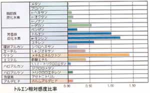 | ■特長 ●室内環境のVOC濃度(トルエン換算値)を、連続的かつリアルタイムに計測可能。 ●吸引ポンプを使用しない拡散式の静音設計 ●VOC濃度の他、温度・湿度のモニタ可能 ●24時間分の計測データを本体内蔵メモリへ記録可能 ●測定環境に応じて、1000、10000μg/m3の計測レンジを選択可能 ●電池電源による24時間の連続測定、移動しながら連続測定可能 ●小型・軽量のため、身体に装着してVOC個人暴露量を計測可能 ●付属ソフトウェアを使用し、PCによるデータ吸い出し、データ処理が可能 ●オプションのシリアルカードによる、最大8点の同時モニタリング可能 ●簡易ゼロ調整器の使用で、どこでも簡単にゼロ調整が可能 ■VOCの特性 ●高感度、優れた直線性 本モニタは厚生労働省のトルエン室内濃度指針値である260μg/m3(25℃時70ppb)の約1/10に相当する30μg/m3以上のトルエンに対して下図のように明確な感度を示します。また、幅広い測定レンジにおいて良好な直線性を保持しています。 ![]() ●トルエン、キシレン(エチルベンゼン)、スチレン等の芳香族炭化水素やメチルエチルケトン等のケトン類に対して高い感度を示す他、一般的にVOCに定義されるヘキサン以上の脂肪族炭化水素や、室内環境中で有害物質として検出されるシクロヘキサン、酢酸エチルにも明確な応答を示します。なお、メタンやプロパンに対してほとんど応答しません。 ![]() ■使いやすさから広がる用途 ●室内汚染物質の低減化対策に伴う改善効果モニタリングに ●住宅内のVOC発生源の特定に ●学校環境衛生によるVOC簡易測定に ●シックハウス症候群に由来すると思われる病症とVOCの濃度変化の因果関係調査に ●詳細分析使用工場の作業環境現場の個人暴露計測に ●ガス発生に伴う工場設備などの機器管理に ![]() 上図は一般主婦の家庭内におけるVOC暴露量を連続計測した結果です。 トイレ掃除による瞬時間的な暴露濃度の上昇や、エアコン作動に伴う換気停止(窓閉め)によってVOCの定常レベルが上昇した様子が反映されています。 ■使用例 ![]() ■PC接続 ●取得データのグラフ化・保存が可能 ●PC保存データはエクセルで読み込み可能 ●PCと接続したリアルタイム測定では長時間のデータ記録可能 ●温度・湿度のデータもPC上に分かりやすい表示 ●データ管理画面 24時間分のVOC濃度・温度・湿度・マーキングタイミングをPC上で分かりやすく表示 ![]()