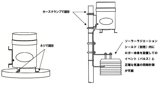 ロガーを太陽の輻射熱や降雨による水濡れから保護し、正確なデータを取得するのを支援します。