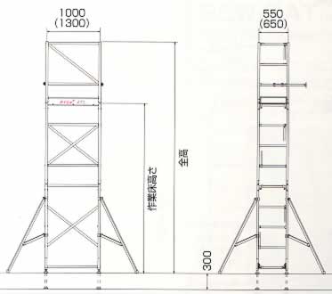 | ■特長 ●独自のパネルジョイント構造で、大幅に揺れを解消! ●脚アジャスト300mm (6mmピッチ)!四脚とも伸縮でき段差に対応! 伸縮操作レバーにダブルロック機構を採用!安全性重視の設計です。 ●組立・解体がワンタッチで行えるオートロックフックジョイント採用。 解体後はライトバンにも余裕で収納可能! ■作業主任者の立会いが必要です(※3段セットのみ) 労働安全衛生法により、作業床高さが5m以上の移動式足場で組立・解体時に組立作業主任者が必要な製品に上記表示をしています。 ■オートロックフックジョイント フックを掛ければ自動的にロックがかかります(PAT. 出願中) ![]() ■アウトリガー どんな場所でもしっかり固定できます(PAT. 出願中) ![]() ■開閉式建枠 左右どちらからでも足場の通り抜けが可能です(PAT. 出願中) ![]() ■開閉式作業床 作業床は広く使える開閉式です PAT. 出願中 ※開閉部:約422×527mm ※一部部品を外して撮影しています ![]() ■壁当て 端具に壁との接地面をしっかりと捉えることができるドームジョイントを採用。より安定性がアップします。 ■タイプ