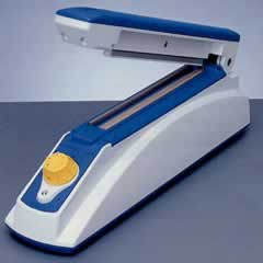 シール幅5mmでアルミ蒸着袋の密封が可能な加熱式シーラー ランプで作業手順をお知らせ、誰でもきれいな仕上がりに 滅菌バッグのフィルム面を向けて中身が見えたまま作業が可能 |