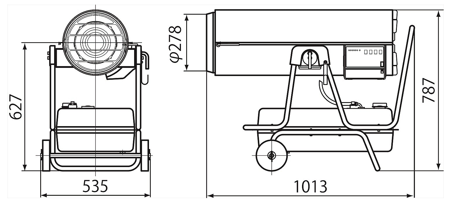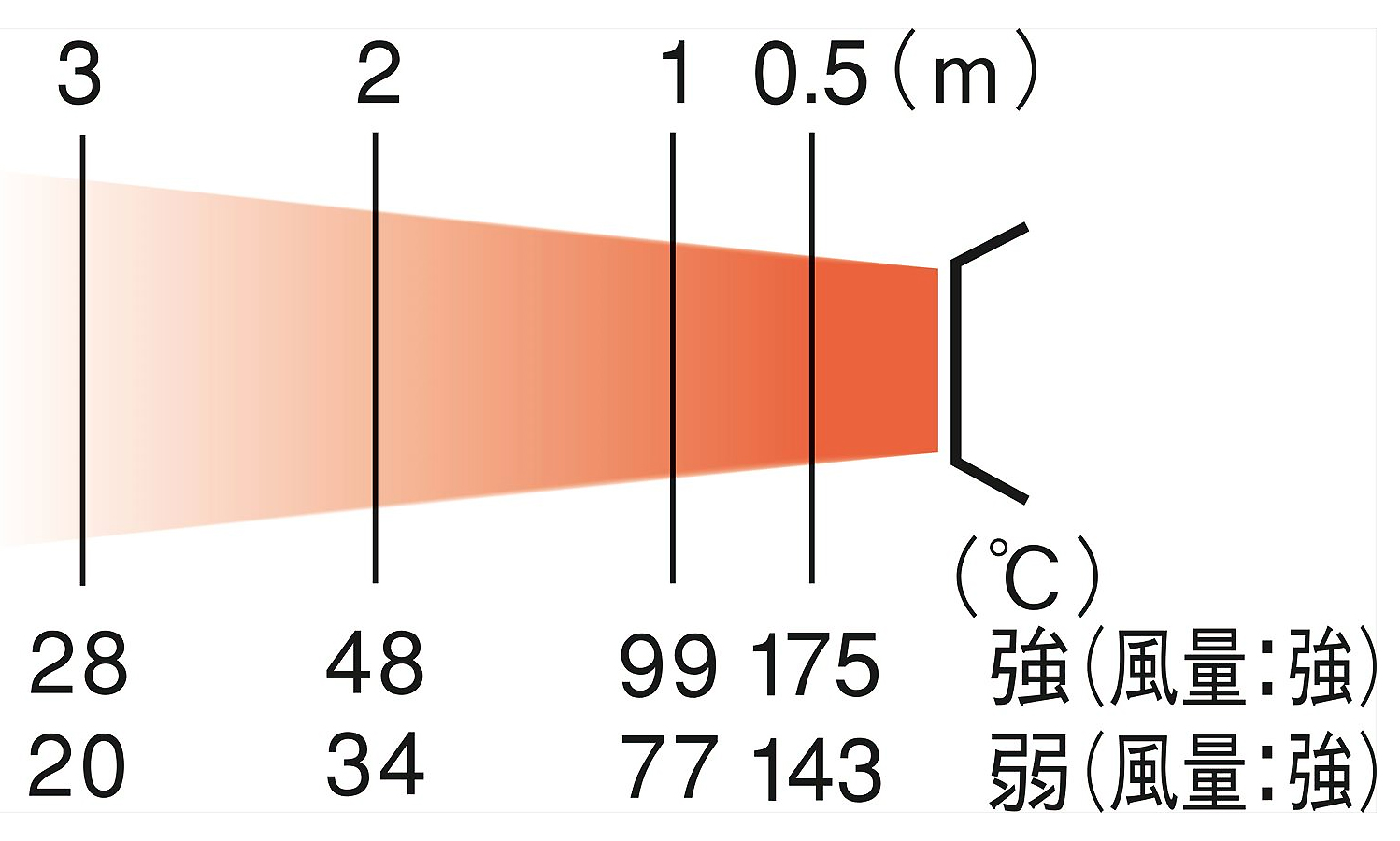 風量アップと風量切替でさらに使いやすい。 バーナーの熱をファンで送り出します。 対流方式ですので、乾燥時に威力を発揮します。 |