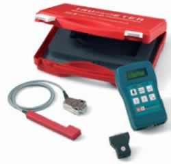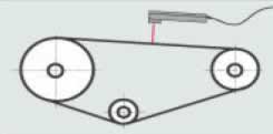電気式のテンション計測器で、ピンと張った静止ドライブベルトの周波数を計測する事により、静ベルトのテンションを計測する事ができます。 | トラムメーター 品番 M1TM-400 |