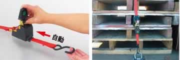 オートリール(自動巻取)式で作業能率UP! | 巻取式ベルト締機 巾25mm 品番 M21851302Pシリーズ 廃番 |