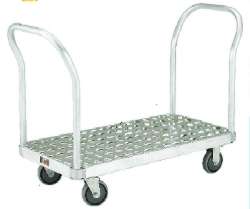 | <用途> ・港など沿岸部の倉庫・工場・事務所など。 <仕様> ・両サイドハンドル仕様・ ・自在キャスター ・固定キャスター各2個 <材質> ハンドル部:スチール ・荷台部:アルミ ・キャスター部:ステンレスキャスター