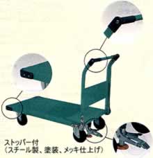 | <仕様> ●前角部プロテクターとハンドルグリップにはポリエチレン製樹脂を使用。 ●キャスター:固定2個、自在2個 <材質> ●本体・ハンドル部:スチール製 ウレタン焼付塗装 ●キャスター:超特殊強力網プレス金具、ゴム車輪 ■特長 ●重量のある本体台車をストッパーでがっちりロックし停止させます。 <仕様> ●プレス金具(車輪)・・・エアーキャスター ![]() ■仕様