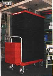 | ■用途 ●荷物の運搬・昇降や作業台など。 ■仕様 ●ジャバラ付き ●昇降方式:バッテリー油圧式(タービン油ISO-VG32使用) ●自在ブレーキ、固定キャスター各2個付き ●電源:バッテリー ●充電器:内臓式約10時間充電(コード長さ2m)、入力電源100V ●モーター:DC12V 0.7kW ●バッテリー:EB35(12V35Ah) ■材質:ジャバラ:ポリエステル地にアクリル樹脂コーティング ■使用例 ![]() ■寸法 ![]() ■仕様 (mm)
