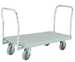 <特長> ●ハニカム構造で耐久性に優れています。 ●角型パイプを荷台裏面に配し補強構造にしています。 ●裏面にスチールシャーシ内蔵の補強構造。 ●ハンドルの脱着可能(両袖・片袖・平台車3パターン)。 <仕様> ●両サイドハンドル仕様(スチール製)・・・・取り外し可能。 ●キャスターにはステンレス金属、ナイロンホイルウレタン車を使用。 |