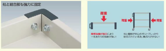 | ■特長 ●新開発の棚板の曲げ加工により、今までにない強度を実現! ●柱と結合部も強力に固定 ![]() ■用途 ●工場内の部品運搬作業に、ピッキング作業に、事務所内の事務機器運搬に、ライン作業における工具置台、商品の仮り置きに ![]() ■タイプ