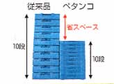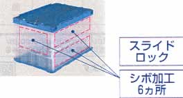 <特長> ●折り畳んだ時の高さを最大限まで追求、従来タイプい比べて最大35%低く、これにより輸送運賃の大幅削減・保管スペースを大幅に削減することができます。 ●スライドロックを設けていますので、内容物を安心して輸送することができます。 |