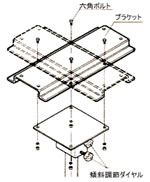 ●上下ストローク30mm調節可能。 ●均等耐荷重:100kg ●ブラケット面の傾斜も最大20°まで調節可能。 ●高さ調節方法は、ジャッキアップ式昇降作業台と同じです。 |