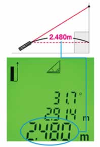 連続、面積・容積、傾斜センサー、水平距離測定、メモリ、計算、ピッチ測定、ピタゴラス、三角形関数 | 角度計付レーザー距離計 品番 M240S-511M 廃番 |
