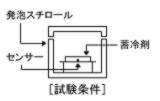 (2)測定方法:蓄冷剤を-25℃の冷凍庫で12時間冷凍したのち、5800ccの発泡スチロール内に入れ、蓄冷剤の表面温度を測定。