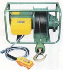 | ■特長 ●小型軽量ボディー コンパクト設計で、据付スペースが少なくてすみます。また、ギヤケース、フレーム等にアルミやプラスチックを使 用し、軽量でなおかつ頑丈な構造になっています。 ●二重ブレーキ 独自のメカニカルブレーキを採用し、発電制動と併用しているため、二重ブレーキで安全に停止します。 ●パイプフレーム ウインチを囲むパイプフレームにより、ウインチの保護・持ち運びが容易です。 ●シリースモーター 低電圧に強いシリースモーターを使用しています。 ●100V電源 電源AC100V(50/60HZ)なので、家庭電源で動きます。 |