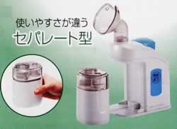 | ●光るスイッチ表示 操作は簡単、ワンプッシュ1回の動作時間は約5分で自動的に終了します。 ●生理食塩水が使えます。 体液と同じ浸透圧の生理食塩水を使えば、水よりも刺激が少なくスムースに吸入ができます。 (生理食塩水:0.9%の塩水。水と塩で作れます) ■吸入療法は風邪や花粉アレルギーなどの、のど・鼻の不快感を暖和します。 空気の乾燥や寒気で、のど・鼻の粘膜や繊毛の働きが衰え、ウィルス・細菌・花粉・ホコリなどの外部から侵入物を 俳泄する能力が落ちます。 そこで、吸入療法により、患部を水または生理食塩水で温め(加温)、潤い(加湿)を与えて、劣えていた粘膜の自 浄作用を活性化させ、くしゃみやせき、鼻水などの症状を暖和します。 ■最適温度43℃ 細胞がやけどせずに効果を最大限に引き出せる温度。 温熱により、ウィルスの産出量やヒスタミンの遊戯が迎えられます。 ![]() ■最適粒子径5ミクロン 粒子径の大きさにより、到達部位は左右され、小さいほど深部の末梢まで到達、沈着します。 5ミクロンの粒子径は、鼻咽頭までまんべんなく沈着します。 吸入粒子径による到達部位 ![]() ■セパレート型 本体と水タンク部が分かれるセパレート型だから、給排水、お手入れが簡単です。 ![]() ■マスク型吸入口 ![]() ■きめ細かいソフトなミスト ●バラツキのない最適5ミクロンの粒子径 ●スチーム式に比べ吸入スタートが早い ●生理食塩水が使えスムースに吸収 ●吸入中の動作音が静か ![]() ■仕様