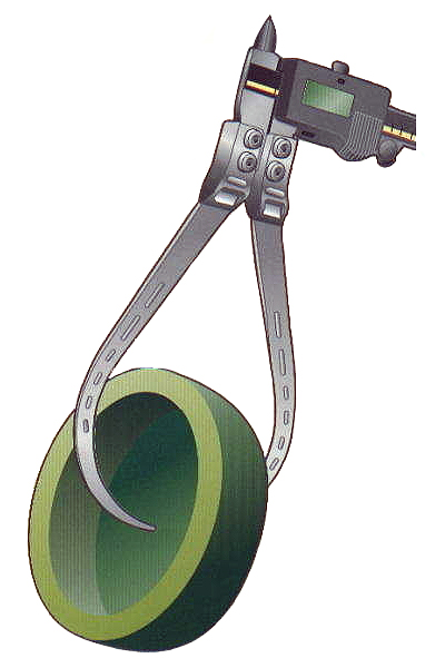 | ■特長 ●通常のノギスへの加工は必要なく、すばやく取り付けできます。 ●凹面下部の厚み等、通常のノギスでは計れなかった部分の測定が簡単にできます。 ![]() ■仕様