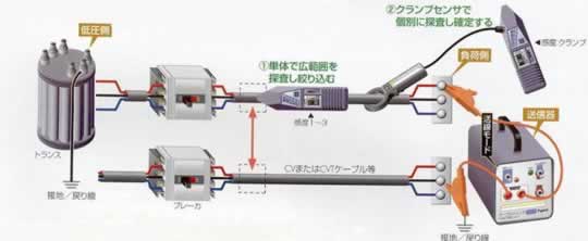 ●誤切断解消 ●手追い探査を解消 撤去ケーブル・電線を確実に探せます!! 発電所・プラント設備・鉄道・その他重要設備の更新時のケーブル探査 |