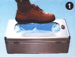 ●ボックスに靴を踏み込むだけで瞬時にシューズカバーをする事ができます。 ●大幅なコストと時間の短縮につながります。 ●使い捨てシューズカバーも大幅なコストダウンを実現しました。 ●腰を曲げてシューズカバーを履くわずらわさを解消します。 ●シューズカバーを履く時に手と靴との接触による手の汚れも気になりません。 |