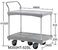 樹脂製五輪台車(2段片軸タイプ) 荷台有効寸法: 上段:W830×D600mm 上段:W780×D600mm 均等積載荷重:400kg 自在車:4個 固定車:1個 |
