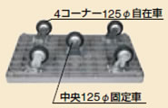樹脂製五輪台車(固定ハンドル) 荷台有効寸法: W830×D600mm 均等積載荷重:400kg 自在車:4個 固定車:1個 |