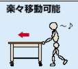 ●移動式(自在2輪、固定2輪) ・自在はイージーストッパー付で車輪の他にも車軸も止める事が出来るため作業時にしっかり止める事が出来ます。 ・片側が固定車なので一人でラクラク移動させることが出来ます。 ![]()
