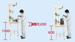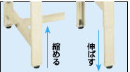 | ■特長 ●高さ調整は任意に位置に調整が可能です。 ![]() ●脚部伸縮自在 脚部は無段階調節ですので、生産商品を選びません。 ![]() ●脚部には目盛り付き! 脚部には目盛りが付いていますので高さ調整が簡単に行えます。 ![]() ■タイプ