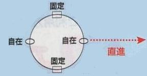 ●固定キャスターと自在キャスターの組み合わせで直進走行を可能にしました。
