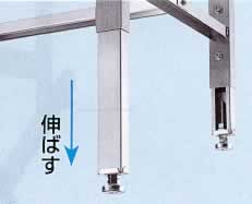 作業に最適な高さに調整してご利用下さい。 板ナットの採用により固定脚とスライド脚の締め付け強度は万全です。 ●ステンレス高さ調整作業台 ●均等荷重 200kg ●組立式 ●グリーン購入対応商品 |