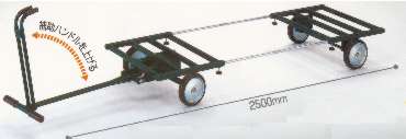 6・8・10尺の長尺の長尺資材がラクラク運べる。 積載荷重:250kg 自重:30kg 使用車輪:200φ ゴム車 3タイプに早変わり |