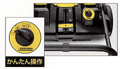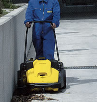 歩道、倉庫・工場、駐車場、ガソリンスタンドなど、屋内・屋外にかかわらず歩きながら手早く簡単そうじ。 ブラシの作業はバッテリー式。ハンドル式を軽く押すだけで作業ができます。 メインブラシは、汚れた空気を外へ逃がさないようにゴムスカートで覆われています。 機器本体は耐腐食性で衝撃に強いプラスチック製です。 ハンドルが折り畳めるので、収納に場所を取りません。 |