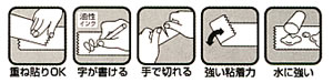 | ■特長 【M374-410シリーズ】は耐水性に優れたポリエチレンの基材を使用しており、【M374-411シリーズ】は耐水性に優れたポリエチレンの織布を使用しています。 ![]() ■タイプ
