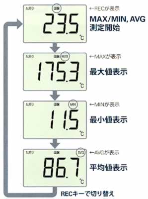 最大/最小、平均値測定。 連続1000時間以上測定可。 多機能&シンプルデザイン 摂氏温度(℃)と華氏温度(゜F)の切り替えが可能。 大型ディスプレイで見やすい。 ラバー構造で手にフィット。 |